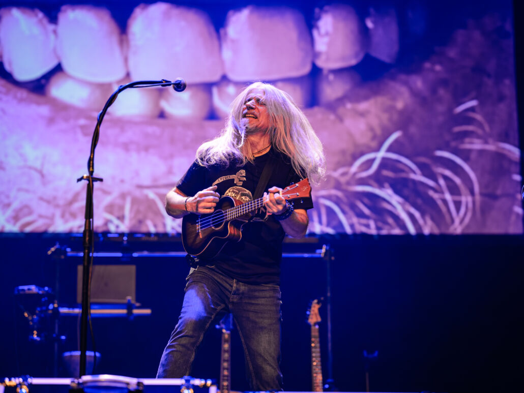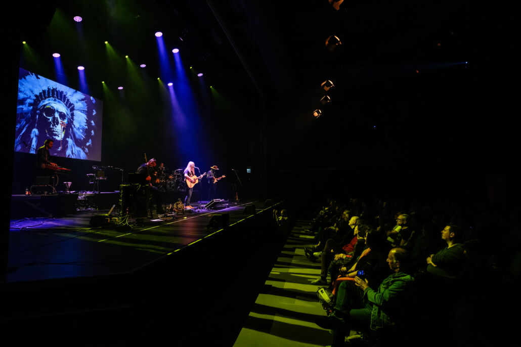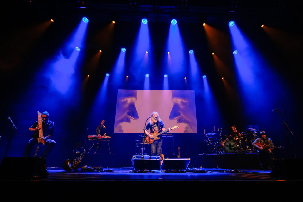 Schon beim Betreten der Halle lag eine besondere Atmosphäre in der Luft: erwartungsvoll, fast andächtig, als wüsste das Publikum, dass es mehr als nur Musik hören würde. Als die Band schließlich die Bühne betrat, begann eine klangliche Reise, die sich nur schwer in ein Genre pressen lässt. LAZULI verbinden Progressive Rock mit Chanson-Elementen, Weltmusik und elektronischen Einflüssen – und erschaffen damit einen Sound, der gleichzeitig komplex und zugänglich ist.
